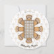 Welcome guests to your next gathering with this luxurious, custom round Fellowship Dinner invitation. The front features an inviting golden-toned cross and all the essential event details, including a casual dress code, the date and time (October 20th at 6:00 PM), and clear RSVP information. The reverse side beautifully sets the scene with a detailed, stylized overhead view of a dinner table surrounded by golden chairs, all against a background of subtle crosses, clearly marked as a "Fellowship Dinner." This unique circular design and warm color scheme are perfect for church community meals, new member welcomes, or special ministry events focused on faith and fellowship.