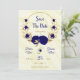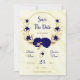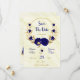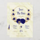 elegantens romantiska royal blåa blommor och guld löv på utandningen från guld, spara inbjudan glitter-detaljerna simuleras