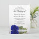 Den vackra bröllopsinbjudan är enkel, traditionell och elegant. Det är ett vackert foto av ett gammalt levande royal blått eller kobolt färgad ro som reflekterar i bassäng i vatten med en formell ordalydelse där bridens föräldrar utfärdar inbjudan. Finare-manuset, kalligrafi ge, är en tidlös och klassisk stil. Snyggt sätt för inbjudan dina vänner och din familj att vara en del av din speciella dag.