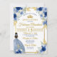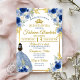 Royal Blue & Gold Floral Quinceañera Birthday Invitation. An elegant, modern design featuring blue and gold florals and a princess. This trendy invitation is perfect for any 15th birthday or special occasion. This can be customized for any age. Coordinating products also available in this collection.