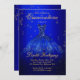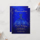 Ett elegant royal blått och guld temade Quinceañera-inbjudan. Observera att glitter simuleras.