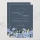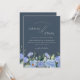 Vi presenterar vår Elegant Royal Blue Opulence Wildblommbröllopsinbjudningar, en perfekt blandning av sofistikering och charm. De här inbjudningarna har en fantastisk vattenfärgsdesign med känsliga blå blommor och framkallar en känsla av modern botanisk elegans, perfekt för ett vinterbröllop. Den minimalistiska layouten säkerställer en enkel men ändå slående presentation. Förstärka skönheten hos royalets blått och blommigt-artister för att ange tonen för din speciella dag
