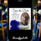 De här vackra datumkorten är det perfekt sättet att låta dina vänner och familj få veta om ditt kommande bröllop. De har en blommigt som är både modern och elegant med ett enda, långlivat royal blått eller kobolt färgad ro som reflekterar i ett bassäng i vatten med vågar och krämer med ditt foto i en ovalformad ram på en klassisk vit bakgrund. Rubriken läser Spara datum med utrymme för namnen, datum och plats. Baksidan är en marmorerad, levande blå färg.