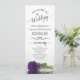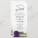 Detta vackra bröllopsprogram har en elegant med en enda lång härd i färgad för lila i royal ro ljugande på vilken sida den reflekterar i vatten. Rubrikerna är skrivna i finare-manusjografi, och det finns utrymme för din ceremoni och bröllopsfest, samt ett kort-tack för dina gäster. Underbart sätt att välkomna dina vänner och din familj till bröllop firande.