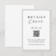 Elegant, refined, and effortlessly modern – this minimalist wedding RSVP and details card features a clean white background, timeless typography, and a discreet QR code for seamless online responses.