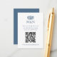 Elegant RSVP Bröllopsmonogram QR-kod Blå Vit Tilläggskort