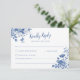 Elegant RSVP med blå blommig och kalligrafisk teck OSA Kort