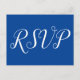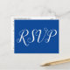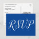 Denna eleganta och rena RSVP-vykortdesign har meddelandet "RSVP" på framsidan. Den har också ett anpassat RSVP-formulär på baksidan som mottagaren ska fylla i, tillsammans med en anpassad adress dit de ifyllda RSVP-korten ska skickas. RSVP-kort som dessa kan användas för att ta reda på vem som kommer att delta i en examensfest, en bröllopsfest, en baby shower, en bröllopsjubileumsfest eller någon annan fest.