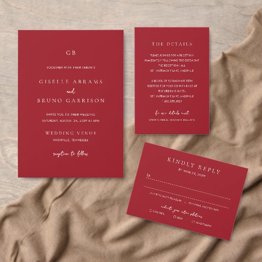Elegant Ruby Red Modern Wedding Invitation SuiteDesignad av Cynthia