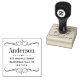 Snyggt gummi frimärke har en elegant rulla ram med anpassningsbarnas efternamn och returadress som kan vara personlig.