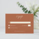 Celebrate your love with this minimalist rust terracotta wedding response card without dinner choices design. Featuring an elegant, simple design, it's perfect for an elegant autumn ceremony. This earthy, modern look offers a warm and sophisticated feel for your fall wedding. Created by Simply Farmhouse Press.