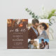 Den här romantiken och eleganten faller i blommigt bröllop spara datum fotokort presenter en botanisk chic av autumnala blommor och grönska i varma toner över en dammig brun bakgrund och är lätt att anpassade med tre av dina favoritförlovningar bilder. Det här Spara datumkortet ingår i samlingen "Elegant Autumnal Blommigt Bröllop", med koordinerande element för att skapa en unik bröllop-svit.