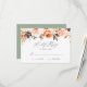 Se till att bröllop planerar springa smidigt med våra Bröllop OSA för Blommigt hösten Elegant. De här korten har en ovansida gräns av vackert handmålade vattenfärgblommor, självkopierande ämnen och löv i mjuk rosa, persika, orange, kräm, brun och grönt, och fångar perfekt fallets kärna. Anpassa med din sista OSA och personligen accepterar/avböjer formuleringar till kostym som du behöver. Utformningen kompletteras med en solid grönt på motsatt sida, vilket ger en något sofistikerad bild. Idealisk för hösten bröllop kombinerar dessa OSA kort sömlöst funktionalitet och säsong charm.