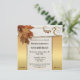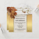 Ett födelsedagsfest inbjudan som har höst löv på ett vävt vitt träskikt som är inramat av metallpaneler i guld. Höst löv är inte bara lämpligt för en säsong-födelsedag, utan kan också representera ett liv och hänvisa till en "över backe"-födelsedag (blinkning).