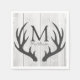 Rustik papper perfekt av cocktail för en pub i hemmet med en grått hjort-antlers silhuett över ljusvita träplåtar och personligens monogramtexter.