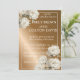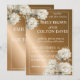 Elegant Guld Bröllopsvisitkort med varm guld-brun bakgrund med känsliga vita blommor.Den här klassiska bröllopsinbjudan för blommigt kombinerar enkelhet och romantiskt firande .omfattar brid och groom namn ,bröllop datum och platsuppgifter i en tydlig snyggt-layout.