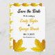 Den här eleganten faller bröllopet, förutom datumet då inbjudan är perfekt för ett modernt höstbröllop. Den enkla designen har guld fallande löv med elegant svart och guld-typografi på vit bakgrund.