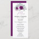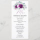 Det här menykortet för elegant har en robust utformning med lila och blommor överst. Den geometriska layouten ger en modern pekfunktion och det enkla teckensnittet är enkelt att läsa. Det är perfekt för en snyggt bröllop och kommer att hjälpa gästerna att veta vilken utsökt mat man kan förvänta sig.