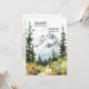 Anpassa de här elegantens inbjudningar till rotationsschemat (med QR-kod och webbplats). Naturlig bergscen med vilda blommor, ängar, träd, flod, himmel...Grönt, brun, grått, gult färg. Radobjekt för att lägga till föräldraobjekt namn. Redigerbara kort - lägg till din information (text kan ändras till valfritt teckensnitt, storlekt och färg). Kortets baksida har brud och stam initialer. Perfekt för bröllopsfest av vinter- eller falltema.