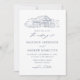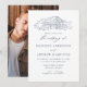Rustiska bröllopsinbjudningar med en marin skisserad illustration av en lada som visas högst upp på inbjudan på vit bakgrund. Fotobröllopsinbjudningarna i lada har elegant marin calligraphy inslag under hela designen. Anpassa bröllopsinbjudningarna med namn och bröllop. Inbjudan går tillbaka till visning av förlovningen för fullt-utfall.