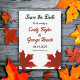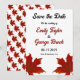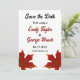 Den här eleganten faller bröllopet, förutom datumet då inbjudan är perfekt för ett modernt höstbröllop. Den enkla designfunktionen som faller samman med löv med eleganten svart och röd typografi på vit bakgrund.