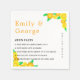 Dessa elegant solrosservetter från bröllop är perfekt för en modern blommigt bröllop. Den enkla designen har blommande gult och orange solblommor med elegantens svarta typografi på vit bakgrund.