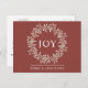 Elegantens moderna, rustiska helgdag-vykort. Grafikkrans i beige med JOY i vitt med ett rött vykort. Anpassa baksidan eller ta bort texten för ett handskrivet meddelande.
