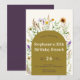 En modern, elegant 30års födelsedag brunch-inbjudan med en guld-hued boho ram och vattenfärgade vilda blommor i violett, terracotta och annan sen sommar färg och grön, med en violett bakgrund på baksidan. Anpassa den till namn, datum, tidpunkt och alla detaljer. En underbar inbjudan för en ung kvinna på trettio, på hennes trettioårsdag: dotter, flickvän, fru, syster osv.