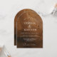 Invite your guests with this stunning arched wedding invitation featuring a rich, dark wood grain texture that exudes rustic elegance. This modern yet organic design perfectly captures the romantic essence of a woodland or country-style celebration.