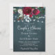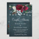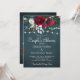 Vinterskortikorts inbjudan till snyggten i party på en mörk midnattskartong med en vacker burgundisk och vit peony ro bouquet med mörk grönt löv från säsong, strängar av vitt skinkligt ljus och ett chic-typografiskt skript. ++++++++++++++ Enkel att anpassa med dina uppgifter! ++++++++++++++++ Inbjudan är lämplig för en elegant vintermodern lantgård vid land, sommarstuga vid jul par dusch, förlovning eller annat party.