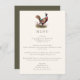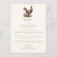 Jakt tema middagsmeny kort med en fasan illustration och elegant typografi, mörk olivgrön baksida och anpassad text. Perfekt för en lantlig middag, elegant bröllopsrepetition middag, jakt middag, jakt pensionsfest eller jakt födelsedagsfirande.