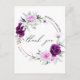 Elegant Rustik Lila Rosa Bröllop Tacksamhet Vykort