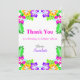 Detta eleganta tropiska födelsedagskort är perfekt för en modern sommarfödelsedag. Den enkla designen har gula, lila och magenta blommor med elegant färgrik typografi på vit bakgrund.