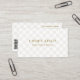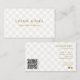 Dessa eleganta företagscheckade visitkort har en ljusbeige rutig bakgrund med guldbokstäver. Lägg till ditt företagsnamn och slogan på framsidan med en snygg bakgrund och elegant serif-teckensnitt. Ditt företagsadress och kontaktinformation inklusive sociala medier och ikoner, samt QR-kod på baksidan. Perfekt för personliga varumärken, boutiquer och mer.
