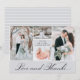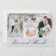 Den här eleganten tackar dig för att du har kort med fyra av dina favoritfoton från bröllop, på en chic grått färg med modern typografi. Det finns ett alternativ för att lägga till ett meddelande i baksidan om du väljer det.