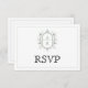 vintage för grönt av elegant ännu med det moderna bröllopet OSA vapensköld monogram för blommigt med QR-kod. Den här OSA kort i elegant bröllop har en sofistikerad utformning som blandar vintage med modern bekvämlighet. En vackert utformad vapensköld för blommigt av grönt tjänar som mittpunkt och visar parets initialer i ett förfinat monogram tillsammans med ett tunt gräns. De känsliga detaljerna i blommigten väcker en känsla av tidlöshet i romantik. För att förenkla OSAN processaa finns en väl synlig QR-kod på kortets baksida, vilket gör att gästerna snabbt och enkelt kan OSA online via sina smartphone.