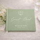 Preserve your wedding memories in timeless style with this elegant sage green botanical crest wedding guest book.