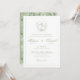 The front features a classic white layout framed by a soft sage border, adorned with a delicate botanical crest and monogram wreath, perfect for showcasing your wedding details in a clean, sophisticated style. The typography blends graceful script with refined serif fonts for a formal yet airy look. The back of the invitation is finished with a soft sage leafy pattern, adding depth, texture, and a coordinated botanical touch that feels both natural and luxurious.
