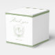 Designed to complement your stationery suite, this favor box features a soft ivory base framed in sage green, accented with delicate botanical details and a refined crest for a luxurious, cohesive look. The clean, minimalist design highlights your personalized details while maintaining a calm, natural aesthetic. Perfect for presenting candies, chocolates, small gifts, or keepsakes, this favor box is ideal for garden weddings, rustic venues, vineyard celebrations, and modern classic receptions.