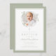 Elegant Sage Green Bow Photo Baptism Invitation. For best results upload a square image of the baby.