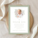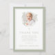 Elegant Sage Green Bow Religious Baptism Photo Thank You Card.