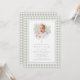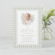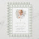 Elegant Sage Green Gingham Bow Photo Girl Baptism Invitation. For best results upload a square image of the baby.