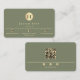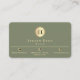 Elegant Sage Green Gold Shiny Circle Monogram Visitkort