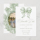 Make your wedding timeless with this elegant sage green vintage toile wedding save the date design. Featuring a detailed elegant bow sketch with a regal crest holding your photo on the back, it is perfect for a sophisticated ceremony. This classic look adds a refined touch to your historic home or garden celebration. Created by Simply Farmhouse Press.