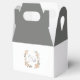 Gör din bröllopsdag unik med en förmånslåda för anpassadets vintage i vattenfärgsträdor med en initialer-vapensköld och en persika, sage-grönt, kräm, rosa och bränd orange-palett. Det här är perfekt för en förmånslåda för godis, kakor eller spelar ingen roll kostym för bröllop, repetitionsmiddag, förlovningsfest, brunch, babydusch eller möhippa. Anpassa din text för ett snyggt till bröllop!
