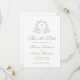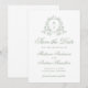Meddela din stora dag i stil med den här vapenskölden för blommigt av grönt spara datumkortet. Med parets monogram initialer inramat av en mjuk botanisk vapensköld markerar denna förfinade design "Save the Date" (Spara datumet) i en färgstark grönt på vit bakgrund. Lägg till namn, bröllop-datum och plats för en personlig beröring som är perfekt för naturinspirerade, trädgårdsinriktade eller tidlösa bröllop-teman.