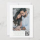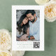 Meddela bröllop med tidsschema med hjälp av det här grönten för att spara datumkortet. På framsidan visas anpassningsbarnas monogram initialer som är inramat av en vapensköld för blommigt av grönt på vit bakgrund. Namn visas i elegant sage grönt calligraphy, med ditt bröllop-datum och din plats nedan. Ett foto på förlovningen vågrät ger en personlig och hjärtfull beröring. På motsatt sida visas ett foto med förlovningen lodrät med en QR-kod nedan, vilket skapar det enkelt för gästerna att söka och få tillgång till webbplatsen och instruktionerna för anpassningsbarna i bröllop. Ett vackert val för naturinspirerat, trädgårdsinspirerat eller romantiskt bröllop firande.