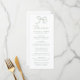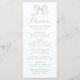 Lägg till en ny och ekologisk känsla i inställningarna för bord med den här mjuka menyn grönt bröllop. En handdragen båge krona överst, parad med "Menu" i sofistikerad kalligrafi. Med utrymme för att inkludera namn, datum och menyval för bröllop, är det här designade kostym naturinspirerat, botaniskt, utomhus eller bröllop. Den mjuka tonen i grönten parar vackert med paletter för neutralt, artek eller blommigt.