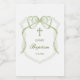 Elegant Sage Grönt Bow Vapensköld Baptism Vinetikett
