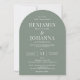 Elegantens bröllopsinbjudan med grönt och vitt brev. Endast text med traditionell ordalydelse. Pappra alternativ för digital utskrift eller fysisk utskrift. Anpassa den till namnen av Mr. och Mrs., plats, register, OSA information och alla detaljer som du behöver ta med. Matchande svitprodukter finns.